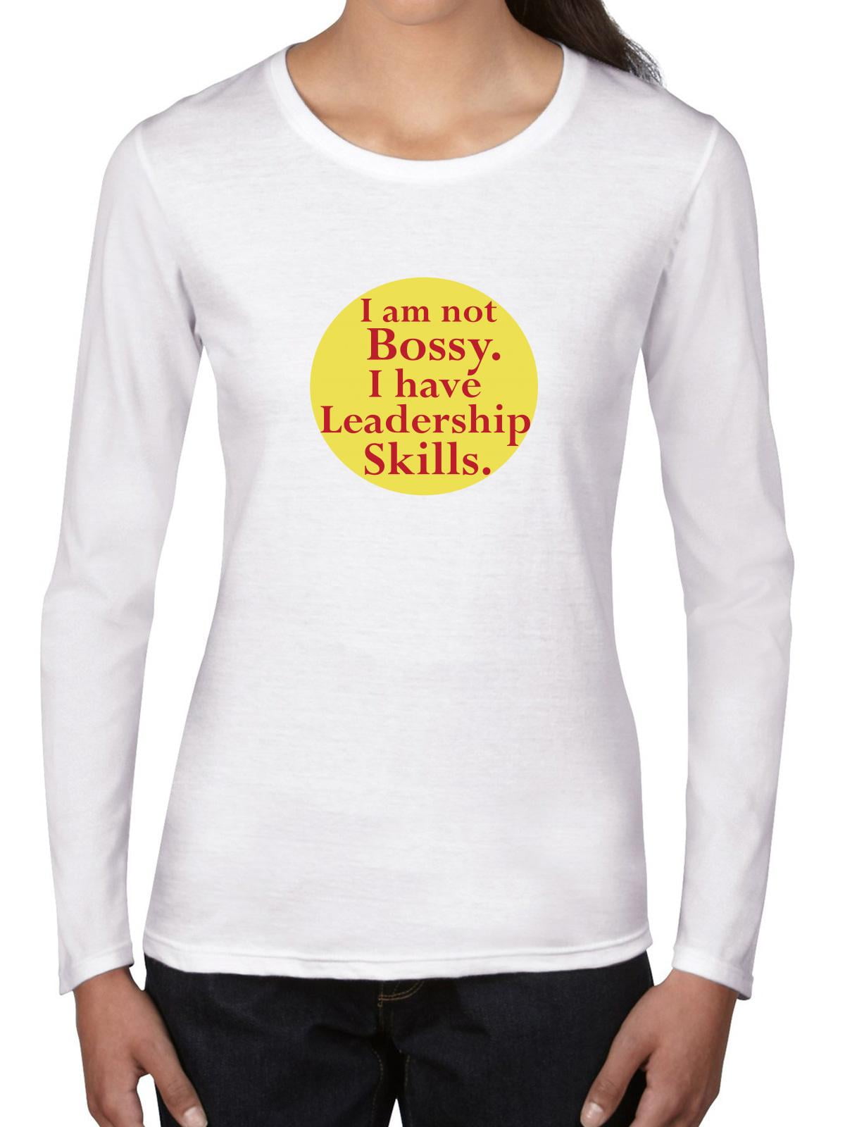 I M Not Bossy I Have Leadership Skills Funny Button Graphic Women S Long Sleeve Grey T Shirt Walmart Com